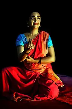 Rajashree Warrier is one of India's foremost Bharatanatyam Dancers. She is also a Musician, writer and Educator. Holds a Phd. in Music from the Department of Music, Kerala University. She is a pioneer in introducing Malayalam poems, folk music and compositions of Social reformer Sree narayana guru in her dance choreographies.[1]