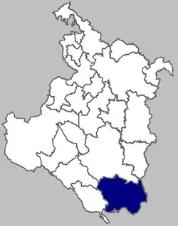 In 1895, the municipality (Croatian: obćina) of Rakovica, with an area of 193 square kilometres (75 sq mi), belonged to the kotar and electoral district in the županija of Modruš-Rieka.[11]: iv, v