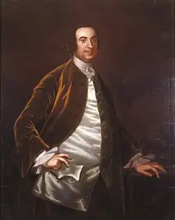 Middlesex County voters elected him to the House of Burgesses in 1742, but he did not was not allowed to take his seat because he had accepted "an office for profit", but voters re-elected him nonetheless. He represented Middlesex County in the House of Burgesses from 1742 until October 1764, when the same rationale was given, but this time Gawin Corbin was elected to replace him.[5] The family biographer explains that the latter appointment was as Comptroller of the Port of the Rappahannock River, which the son carried with him when returning from his British education, but was not allowed to hold, since the absence of a "junior" annotation meant the father (this man) was the actual appointee. Governor Fauquier in 1766 wrote the Board of Trade concerning the matter, indicating this man's desire to relinquish the office in favor of his son, who was a schoolmate of prominent Whig Charles James Fox, who had influenced Lord Grenville concerning the appointment[6]