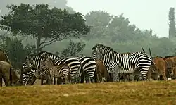 Ramat Gan Safari houses 83 species of mammals, 92 species of birds and 23 species of reptiles. Among other outstanding groups of animals, it has white rhinos, hippos, lions, African and Asian elephants, chimpanzees, gorillas, orangutans, and a Komodo dragon.[4] The animals are seen in open air enclosures amid subtropical gardens.