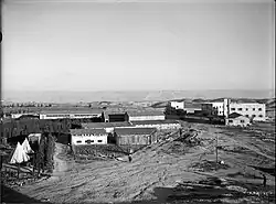 The kibbutz was established in 1926 by members of the Gdud HaAvoda labor brigade. Their goal was to settle in Jerusalem and earn their livelihood from manual labor, working in such trades as stonecutting, housing construction and haulage.[3] After living in a temporary camp in Jerusalem, a group of ten pioneers settled on a stony plot of land on an 803-metre high hill south of the city. The kibbutz was destroyed by the Arabs in the riots of 1929. Hundreds of Arabs attacked the training farm and burned it to the ground.[4] The settlers returned to the site a year later. According to a census conducted in 1931 by the British Mandate authorities, Ramat Rachel had a population of 131, in 45 houses.[5]