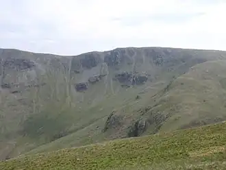 The top is grassy with a little outcropped rock, a cairn marking the top. A larger cairn is set on the brink of the north face. The view westward to the Helvellyns is good with Ullswater and Brothers Water also visible.[1] Ascents can be made via other fells from Patterdale, Hartsop and Mardale Head.