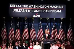Several political analysts pointed to the established network of supporters that his father, Ron Paul, had garnered through his own attempts at running for President of the United States in the 2008 and 2012 elections.[45] At the same time, other analysts stated that Ron Paul may have been more of a liability, due to his consistent opposition to foreign involvement, which may not have appealed to mainstream Republican voters.[46] A Super PAC was formed by Ron Paul's 2012 campaign manager John Tate, known as America's Liberty PAC, which stated that it is the only Super PAC officially endorsed by Paul.[47] The group also boasted several staff members from Campaign for Liberty, a group founded in 2008 following the Ron Paul's first unsuccessful attempt at receiving the Republican Party's nomination for president.[47] A second SuperPAC was formed by former FreedomWorks president Matt Kibbe and Young Americans for Liberty president Jeff Frazee.[48]