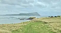 On the left is Rangatira, and in the distance in the middle of photograph "The Pyramid" (Tarakoikoia)