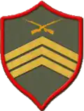 • The so-called officer regiments (Alexeev, Drozdovsky, Kornilov and Markov regiments) had their own colors and uniforms. Initially, only former officers were accepted to these regiments, for which reason their ranks began with the 2nd lieutenant (podporuchik) upwards. In addition, the officer regiments introduced sleeve insignia (from 1 to 8 horizontal bars). Later, these regiments introduced ranks for soldiers and non-commissioned officers as well. Their corps colors were:
