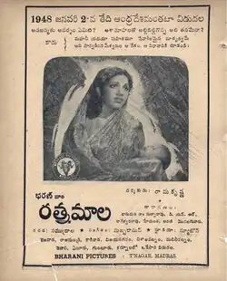 Ratnamala is a 1948 Telugu-language film, produced and directed by P. S. Ramakrishna Rao under the Bharani Studios banner. It stars Bhanumathi Ramakrishna and Akkineni Nageswara Rao, with music composed by C. R. Subburaman.[1]
