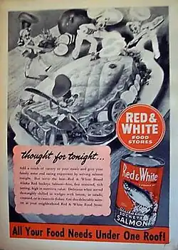 1. ^ "FTC Files Complaint Against Grocer Group And Purchasing Unit." Associated Press at The Wall Street Journal. September 14, 1943. Retrieved on November 6, 2011. "[...]a purchasing organization with headquarters in Chicago, and a group of wholesale grocery firms for which it buys Red and White private brand foodstuffs[...]"