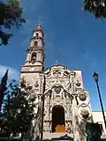 It is a baroque temple of the 18th century that was intervened for the first time in 1907, by Refugio Reyes. The project that he presented in 1919 for the towers was discarded and in 1925 a project proposed by the Inspection of Artistic and Historical Monuments began to be carried out. In 1936 the architect Luis del Refugio Palacios began the execution of a new project that was soon discarded because it was about to collapse. Father Francisco Tiscareño then turned to Refugio Reyes to consolidate the new floor plan, of which no plans have been preserved. Reyes built the lateral naves of the sanctuary, as well as the cubes for the towers, executed in the 70's by an architect who respects Reyes' typology, Víctor Manuel Villegas.[84][82]