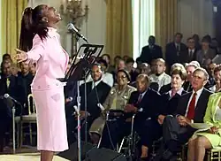Belle performing for President George W. Bush and First Lady Laura Bush during a Black Music Month celebration in the East Room of the White House on June 30, 2001