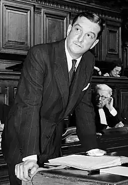 In 1949, Bousquet was the last Frenchman to be tried by the Haute Cour de Justice, which had been created on 18 November 1944. He was acquitted of the charge of "compromising the interests of the national defence" but was automatically declared guilty of indignité nationale for his involvement in the Vichy government. He was given the minimum sentence of five years on dégradation nationale, a measure that was immediately lifted for "having actively and sustainably participated in the Resistance against the occupier".[7]