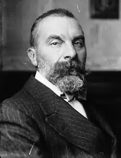 Between 1897 and 1903 he took part in 18 car races, 5 of which he won (Paris-Bordeaux 1898, Spa-Bastogne-Spa 1899, Tour de France 1899, Circuit du Sud-Ouest Pau 1899, and Nice-Marseille-Nice, 1900).[2] He drove all the races in a Panhard & Levassor, wearing a captain cap which he always lost right after start. During his racing career, he was famous for his gentlemanship and sportsmanship. For example, during the Paris-Bordeaux race in 1895, he saw his great rival Fernand Charron who was sitting on the road next to his undependable car, tired and desperate. De Knyff stopped, asked Charron if he could help him somehow, gave him a glass of cognac and encouraged him to go on, which Charron did.[3] He was a popular figure also due to his enormous beard, bohemian lifestyle (he knew where to get the best champagne, cigars and Rhine wine),[3] and interest in many other sports, such as tennis, shooting, cycling, and also hunting. His cousin Gaëtan De Knyff (1871-1933) was also active in cycling and car racing.[4]
