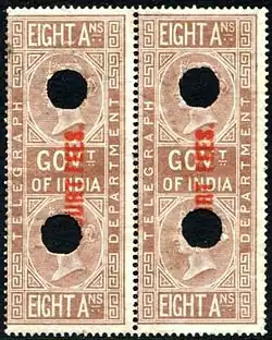 Meanwhile, many revenue issues both before and after independence exist with provincial or state overprints. Overprints are known from about 75 different states.[3][4]