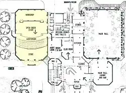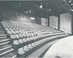 Work was completed on the complex in 1975 and the theatre was officially opened to the public under the management of Mike Kelly. A brochure produced when the Centre Halls first opened describes the Rhoda as an ‘intimately styled theatre’ with ‘well tiered and comfortable seating - for theatrical, operatic, concert, film and other similar productions’.