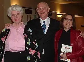 Julia Wilke (his wife), Bishop Richard B. Wilke, and Nancy Kruh (Author of a book about The Disciple Bible Study) at Suncreek United Methodist Church (Allen, TX) in 2005.