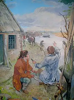 In his semi-fictional book, "The Memorables of Robin Cummell", John Service records that Richard Brown, Keelivine (a lawyer), Robin Cummel, and Tammy Struggles (a nickname) at the Wheatsheaf Inn in Irvine's High Street.[20] The name 'Keelivine' means 'Lead pencil' in Lallans, an appropriate sobriquet for a lawyer's clerk.[21]