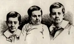 1895 sketch of Richard Bland's sons, George V. (left), John (center), and Ewing (right)