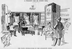 Illustration from The Chicago Chronicle of the Bland campaign's convention headquarters at the Auditorium Annex