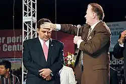 Roberts remarried and continued traveling, doing concerts, and singing on television. The concerts transformed into a combination of music, preaching and ministry events where Roberts prayed for people and people were testifying they had been healed.[1][4] In 1982, Roberts held the first of many international crusades, starting with South Africa. According to the ministry website, oralroberts.com, Roberts has ministered in over 40 countries on six different continents including: Russia, India, Brazil, Australia, Niger, and Indonesia.[24]
