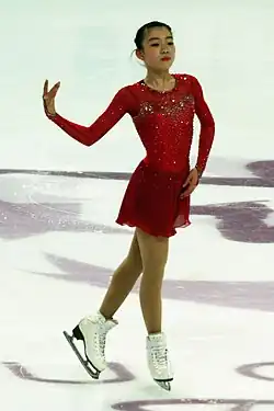 Kihira was chosen to represent Japan at the 2021 World Championships, where she was rated as a contender for the title alongside the top Russian skaters.[51] She placed second in the short program after her triple Axel and toe loop were a quarter of a rotation short.[52] In the free skate, Kihira doubled her first attempt at a triple Axel, fell on an underrotated second attempt, and underrotated two other jumps, finishing ninth in that segment and dropping to seventh place overall.[53] Her placement, combined with that of Sakamoto, who finished above her in sixth, qualified three ladies' berths for Japan to the 2022 Winter Olympics.[54]
