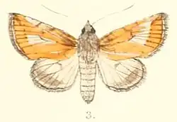 2. ^ Hewitson, William C. & Moore, Frederic (1879). Descriptions of New Indian Lepidopterous Insects: From the Collection of the Late Mr. W.S. Atkinson, M.A., F.L.S., &c. The Asiatic Society of Bengal. OCLC 9625544 – via Internet Archive.