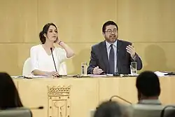 Days after assuming office, she was charged with a transgression of "offense to religious feelings" due to her participation in a 2011 pro-laicist protest in the chapel of the UCM Faculty of Psychology,[7] for which she was initially sentenced to pay 4,320 € in March 2016,[8] ultimately being fully acquitted in December 2016 after appealing to a higher judicial instance.[9]