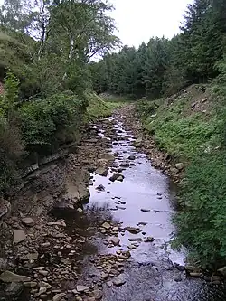 The only significant tributary of the River Ashop is the short River Alport. The flow of the Alport is partially diverted by a weir to feed into the Ashop above the impound weir built in the 1920s to increase the catchment area of the Derwent Reservoir prior to the building of the Ladybower Reservoir downstream. The weir impounded the water and fed it into an open culvert (water conduit) that was built along the side of the hill. The culvert then feeds into a siphon over the river in a 6-foot-diameter (1.8 m) iron pipe before entering a tunnel to pass through the hill to the Derwent Reservoir via an open watercourse, entering the reservoir just north of the dam wall. The concrete structure of the weir is visible when travelling up the Snake Pass route from Sheffield.[3]