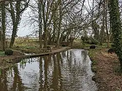 The Marden rises just north of the valley of Ranscombe Bottom near Calstone Wellington in Wiltshire.[1] It then flows in a north-west direction through the Blackland area, where it forms a small ornamental lake at Blackland House, and on to Quemerford, where it is joined on the right bank by the Rivers Brook. In Calne, the Abberd Brook joins on the right. The river turns in a westerly direction and is joined by the overspill from Bowood Lake, part of the Bowood House estate, on the left at Studleybrook Farm. The river is then joined by the combined Fisher's and Cowage brooks before turning to the north-west, past the village of Stanley. 1.5 miles (2.4 km) later it joins the Bristol Avon to the north-east of Chippenham.