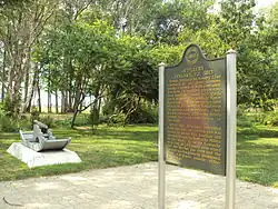 The site was recognized nationally when it was added to the National Register of Historic Places on December 10, 1982. It was officially listed as the River Raisin Battlefield Site (20MR227).[1] In July 1990, the Monroe County Historic Commission and the Monroe County Historic Society opened the River Raisin Battlefield Visitor Center within the site at 1403 East Elm Avenue. The museum contains a few relics from the original battle that were discovered during archeological investigations. The park holds a memorial service every January to commemorate all the soldiers who fought in the Battle of Frenchtown, including the British and Indian soldiers who were allied against the Americans.[12]