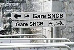 Road signs in Belgium are defined in the Royal Decree of 1 December 1975 on general regulations for the road traffic police and in the use of public highways.[1] They generally conform to the 1968 Vienna Convention on Road Signs and Signals.[2] The official typeface on road signs in Belgium is SNV.[3]