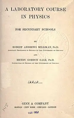 - Millikan, Robert Andrews (1906). Laboratory course in physics for secondary schools. Boston: Ginn.