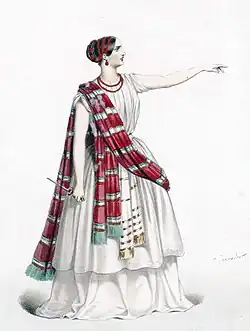 Rossini was clearly involved in the collaboration but did not attend the premiere in Paris.[8] The production included a ballet with the dancers Lucien Petipa, Henri Desplaces, Adèle Dumilâtre, and Maria Jacob, and choreography by Joseph Mazilier.[9] The décor was designed by Joseph Thierry (Act 1); Charles Cambon, Jules Diéterle, and Édouard Desplechin (Act 2); and René Philastre and Charles Cambon (Act 3). The costumes were designed by Paul Lormier.[10] It was a moderate success, but the opera was the subject of much criticism from Hector Berlioz, among others.[8]