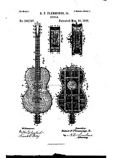 5. ^ a b c d e US 338727, Flemmings, Robert, "Guitar", issued March 30, 1886  <http://pdfpiw.uspto.gov/.piw?PageNum=0&docid=00338727>