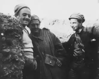 Thompson's first foray into war came in February 1937, when he volunteered in the Abraham Lincoln Brigade to fight for the Republicans in the Spanish Civil War against General Francisco Franco and the Nationalists.[3] Thompson first served in the predominantly-American Lincoln Battalion and was wounded in action at the Battle of Jarama. He then attended officer training school and took over as commander of the predominantly-Canadian Mackenzie–Papineau Battalion,[2] leading it during the Battle of Fuentes de Ebro.[4] He returned to the United States in August 1938.[2]