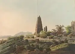 It is thought that Colebrooke was born in Switzerland. His father Robert Colebrooke (1718 - 1784) was the British ambassador to the Swiss confederacy from 1762 to 1764 and his mother was Mary (née Williams). The father had to sell his property of Chilham Castle in 1774 to pay his creditors. Colebrooke joined the Bengal Infantry in 1778. T.D. Pearse trained and appointed him as Surveyor in 1783. Colebrooke surveyed the distance from Hooghly to Madras using a perambulator. Trained in topographical illustration and surveying he produced "Twelve views of places in the kingdom of Mysore" in 1794 based on his work in Mysore in 1790. He accompanied Archibald Blair to survey the Andaman Islands in 1789. Colebrooke Island and Passage were named after him. Colebrooke compiled a vocabulary of Andaman islanders in an article to the Asiatic Society of Bengal. He also described the volcanic Barren Island.[2][3] After Alexander Kyd was moved to the Andamans as Superintendent of the settlement, the position of Surveyor General of Bengal became vacant and Colebrooke was appointed in 1794. He remained in this position he kept until his death from dysentery in 1808 on the way from Rohillakhand to Calcutta at Bhagalpur. Colebrooke was a cousin of the orientalist H.T. Colebrooke. He was promoted to Lieutenant in November 1778, Lt-Colonel in November 1803.[4] Colebrooke took a special interest in the changing course of the Ganges river. One of Colebrooke's suggestions, made in 1795, was that by cutting a 20 foot wide and 15–20 foot deep canal between the Hurdum and Ichamati[5] to connect the Churni River and the Ganges would make the river navigable for 155 miles and avoid the route through the Sunderbans.[6] The idea was opposed by James Rennell who said:[7]