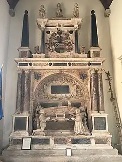 His magnificent monument with effigy, erected by his daughter and son-in-law, survives in Exton Church,[1] inscribed as follows: