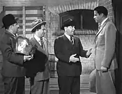 ![]() Robert Kellard (far right) fires The Three Stooges from their job in 1946's Rhythm and Weep | |
