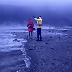 Bill Curtsinger and Sam Mathews from National Geographic examining a fumarole on Deception Island, 1971