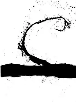 In 1948 Motherwell executed the image which would prove to be the germ of the Elegies to the Spanish Republic, one of his best known series of works. During 1947–48, Motherwell collaborated with the art critic Harold Rosenberg and others to produce Possibilities, an art review. During the latter year Motherwell created an image incorporating Rosenberg's poem "The Bird for Every Bird", meant for inclusion in the review's second issue. The top half was a handwritten, stylized rendering of the poem's final three lines, and the bottom half was a visual element consisting of roughly rendered black ovoid and rectangular forms against a white background.[19][20] The stark image was meant to "illustrate" the violent imagery of the poem in an abstract, non-literal way; Motherwell therefore preferred the term "illumination".[21] The second issue of Possibilities did not materialize,[22] and Motherwell placed the image in storage. He rediscovered it roughly one year later[21] and decided to rework its basic elements. This led to the Elegies to the Spanish Republic which Motherwell continued to produce for the rest of his life; several years later Motherwell retroactively titled the original image Elegy to the Spanish Republic No. 1, recognizing it as the series' starting point. A representative example is Elegy to the Spanish Republic No. 110 (1971) which employs the same visual motif of rough ovoid and rectangular forms. The series' abstract imagery has been interpreted as representing violence in Hispanic culture, not necessarily related to the Spanish Civil War of its title. For example, Motherwell himself and others have compared the images to the display of a dead bull's genitalia in the Spanish bullfighting ring.[2][23]