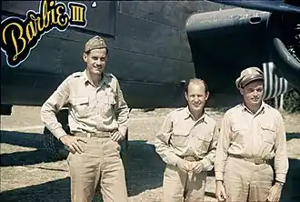 1st Air Commando Group Bomber Section Commander R.T. Smith and Co-commanders John Alison and Phil Cochran in front of R.T. Smith's B-25H "Barbie III" at Hailkandi, India, in March 1944