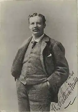 Born in Painswick in Gloucestershire, he was the son of Mary Watkins (born 1817) and Thomas Mills (1819 – 1883). In 1869 he married Elizabeth Hore (1850-after 1891).[1] Robert Watkin-Mills studied singing with Samuel Sebastian Wesley in Gloucestershire, Edwin Holland in London, and Federico Blasco in Milan. He made his professional singing debut at The Crystal Palace in May 1884 in a concert with Sims Reeves. In 1886, he sang the role of the Forester in the premiere of Arthur Sullivan's cantata The Golden Legend at the triennial Leeds Festival. He also sang in the 1893 premiere of Ethel Smyth's Mass in D at the Royal Albert Hall. He had a successful career in Great Britain, the United States (he returned almost every year from 1894), and in Australia from 1904 to 1905.[2] In Canada he appeared with the Montreal Philharmonic Society and other musical societies, specialising in the concert platform and in oratorio, especially in such works as Handel's Messiah and Judas Maccabaeus.[3]