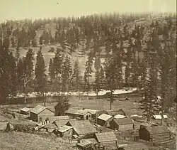 The Rock Creek Gold Rush was a gold rush in the Boundary Country region of the Colony of British Columbia (now part of a Canadian province). The rush was touched off in 1859 when two US soldiers were driven across the border to escape pursuing Indians and chanced on gold only three miles into British territory, on the banks of the Kettle River where it is met by Rock Creek, and both streams turn east to where in times since developed the city of Grand Forks (so-named because of its location at the confluence of the Kettle and Granby). The first claim was filed by an Adam Beam (or Beame) in 1860, and the rush was on, composed mostly of Americans and some Chinese, all of whom had come overland from other workings, either at Colville or Oregon or all the way from California.