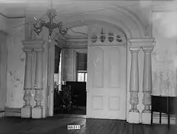 The interior of the house featured some of the most elaborate woodwork and plasterwork in the state.[6] Other features of the house were an impressive walnut staircase, double parlors and Italian marble mantles.[1][2]