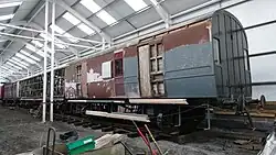 NER 131 Six-wheel Full Brake Built to NER diagram no. 171. Carriage body preserved by the MSLR in 1994. Moved to Whitwell & Reepham railway station in June 2012 when placed on a tube wagon underframe. Later transported to Kirkby Stephen East station in June 2014 where restoration work could take place. By August 2018 a significant amount of work done, it will later returned to its original six-wheel appearance.