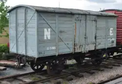 LNER 680360 Covered goods van Was under restoration at the MSLR in an open siding but moved to the Stainmore Railway at Kirkby Stephen East railway station in 2015. Now numbered 241245 and repainted in a blue engineering train livery.