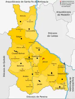 The Diocese of Jericó (Latin: Dioecesis Iericoënsis) is a Latin Church ecclesiastical territory or diocese of the Catholic Church in Western Colombia. It is a suffragan diocese in the ecclesiastical province of the metropolitan Archdiocese of Medellín.