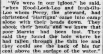 Account by Robert Peary of the death of Marvin as published in September 1909