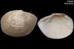 | Shell of Rostrilucina anterostrata (holotype at MNHN, Paris) | |