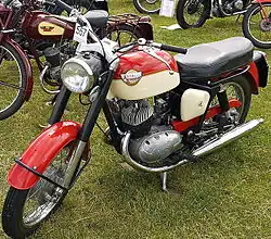 Royal Enfield produced a number of 250 cc machines, including a racer, the 'GP'[26] and a Scrambler, the 'Moto-X', which used a modified Crusader frame, leading link forks and a Villiers Starmaker engine.[27][28] The Clipper was a base-model tourer with the biggest-seller being the Crusader, a 248 cc pushrod OHV single producing 18 bhp (13 kW).