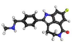 Rucaparib, sold under the brand name Rubraca, is a PARP inhibitor used as an anti-cancer agent.[2] Rucaparib is a first-in-class pharmaceutical drug targeting the DNA repair enzyme poly-ADP ribose polymerase-1 (PARP-1). It is taken by mouth.[2][4]