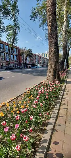 Rudaki Avenue (Tajik: хиёбони Рӯдакӣ, romanizedkhiyoboni Rūdakī, Russian: проспект Рудаки, romanizedprospekt Rudaki) is the main thoroughfare street in Dushanbe, the capital of Tajikistan.[1][2][3] The street is named after Rudaki, the Tajik national poet.[4] The street was known as Lenin Avenue during the Soviet period, and used to host a statue of Vladimir Lenin.[5] The street received its current name in the summer of 1992.[6]